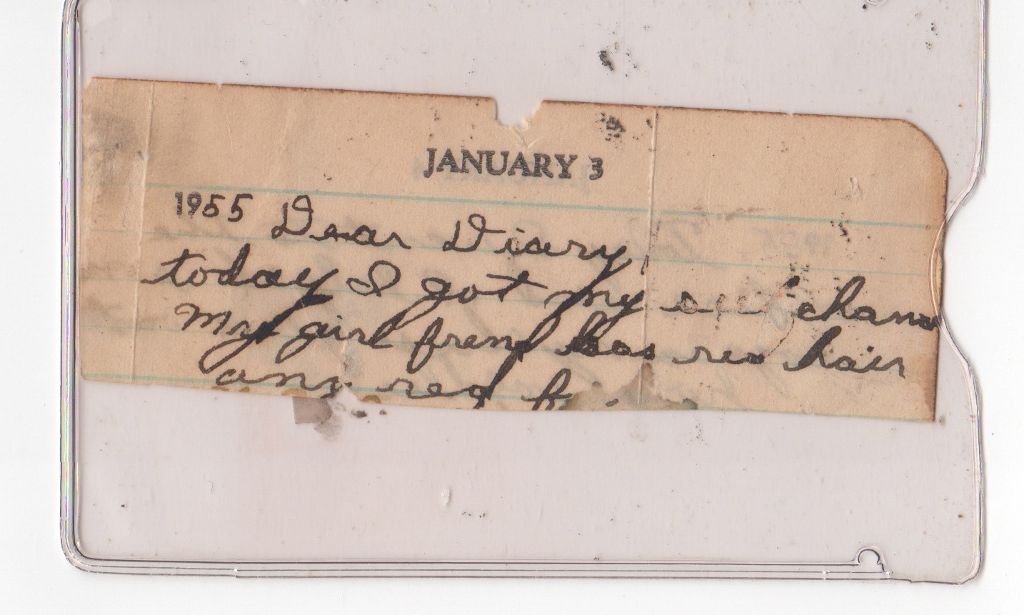 The scribbled lines from his diary (carried in his wallet to this day), still speak volumes; I, the”girl friend” with the “red hair and red freckles”.